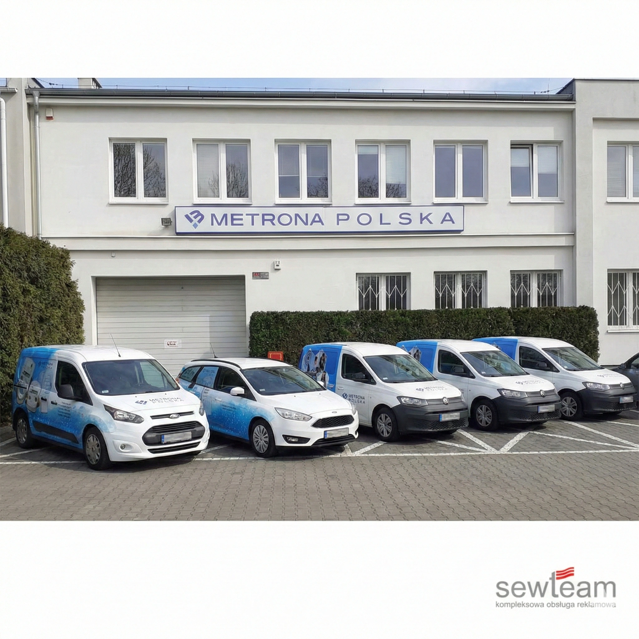 Metron Polska to firma, której identyfikacja wizualna musi działać jednocześnie w trzech przestrzeniach: na obiekcie, w drodze i na człowieku. SEWTEAM przejął koordynację całego projektu, zapewniając spójność kolorystyczną i jakościową na każdym nośniku.